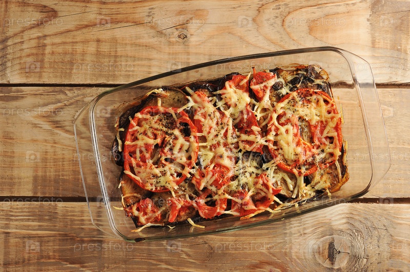 Запеченные баклажаны с помидорами и сыром