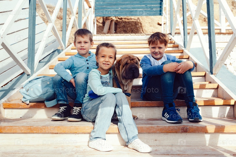 Счастливые дети на берегу моря