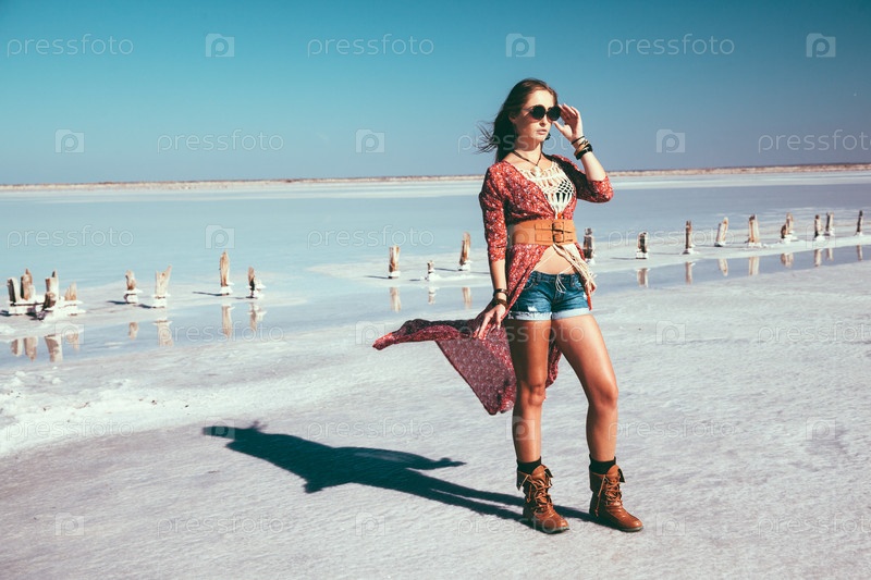 Стильная девушка у моря