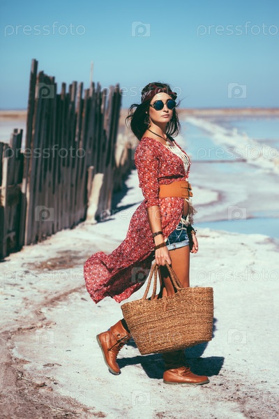 Стильная девушка у моря