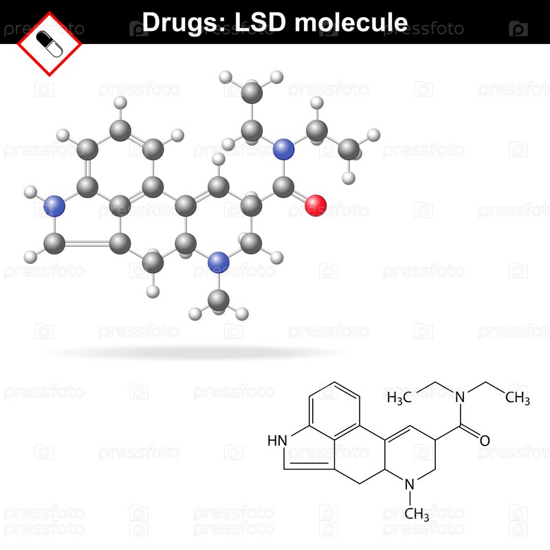 Молекула ЛСД и 3D-модель