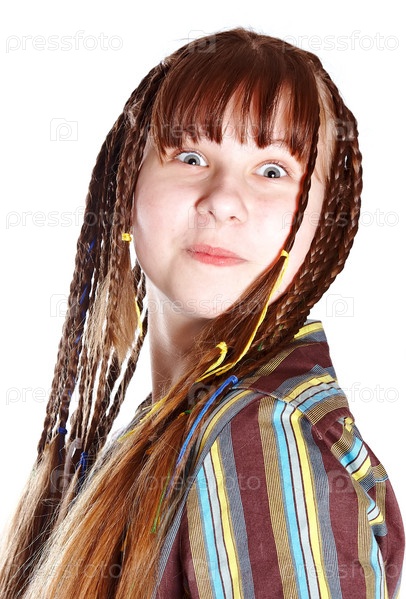 Веселая девушка на белом фоне