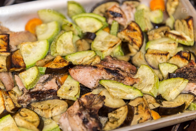 Курица, запеченная в духовке с баклажанами и цуккини