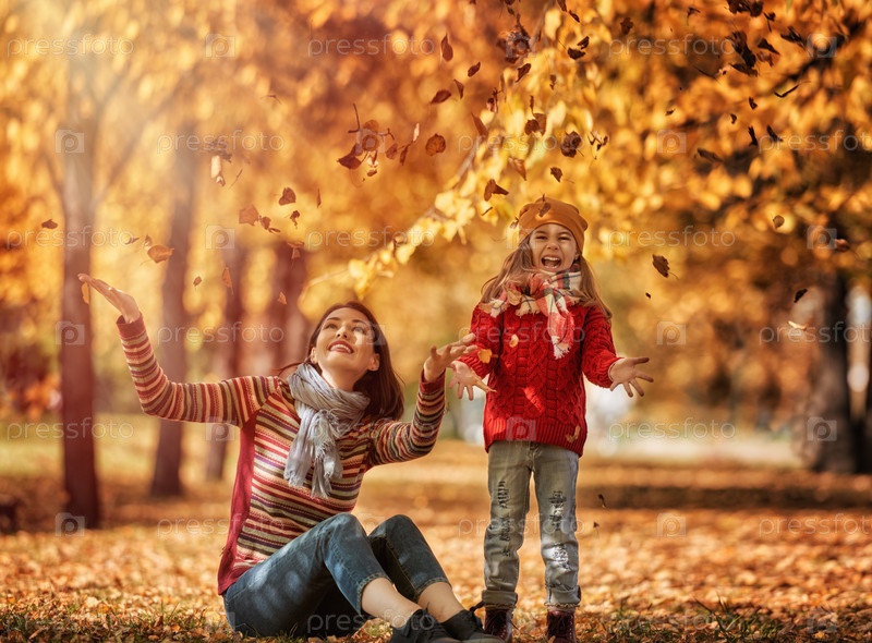 Мать и дочь в осеннем парке