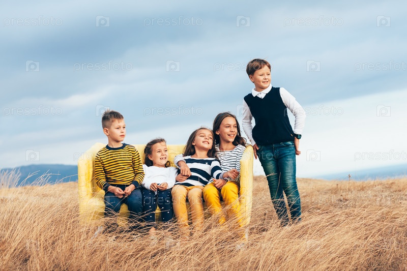 Стильные дети на осеннем поле