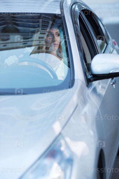Молодая блондинка за рулем автомобиля