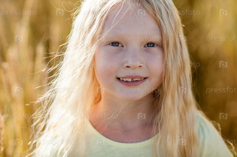 Милая девочка в пшеничном поле