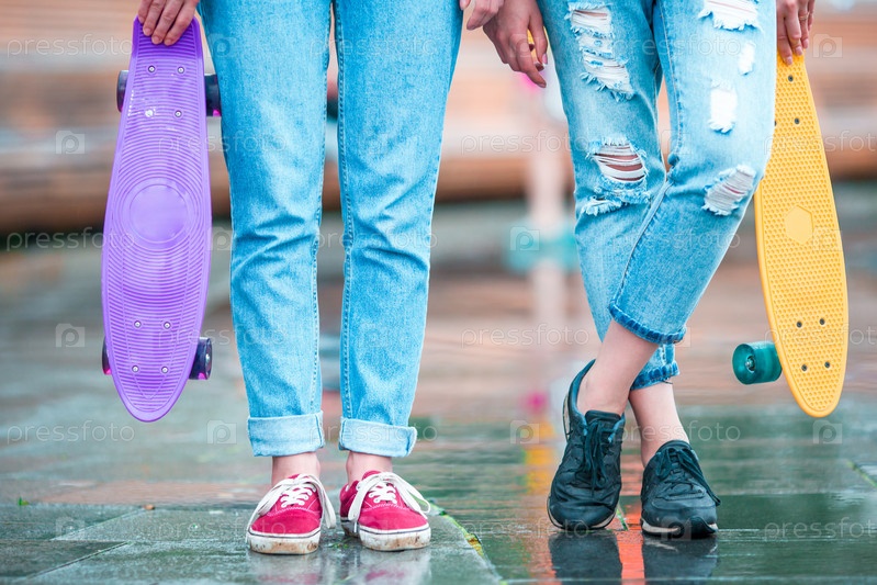 Две девушки со скейтами