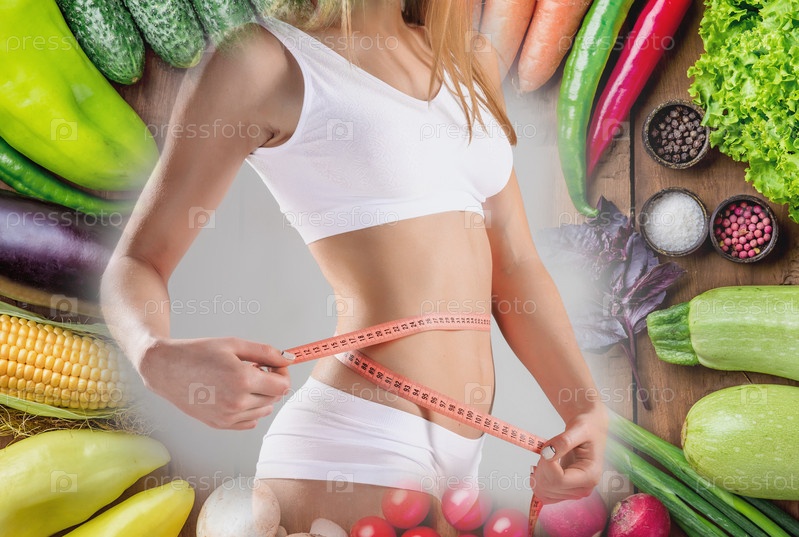 Молодая здоровая женщина с овощами. Коллаж