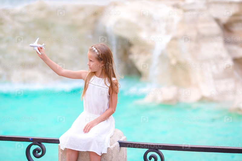 Очаровательная маленькая девочка у фонтана
