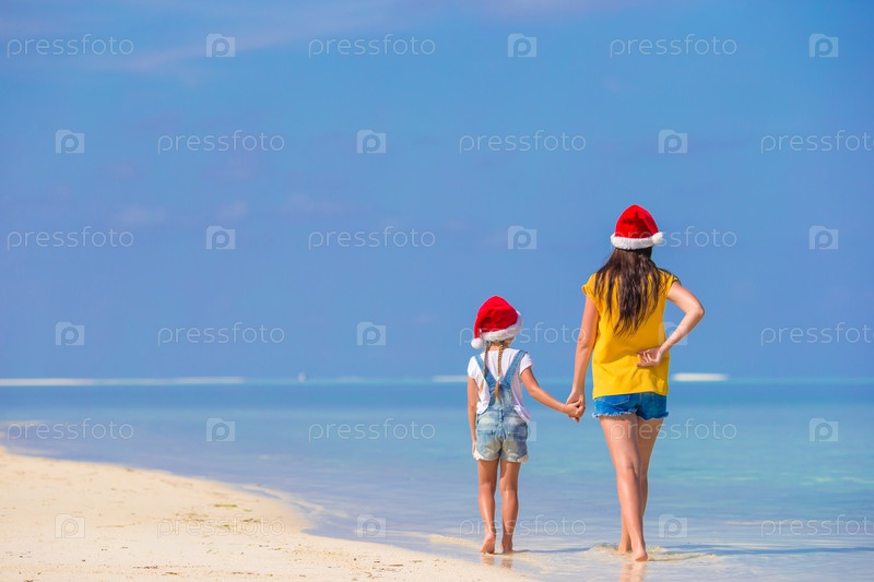 Маленькая девочка и молодая мать на пляже
