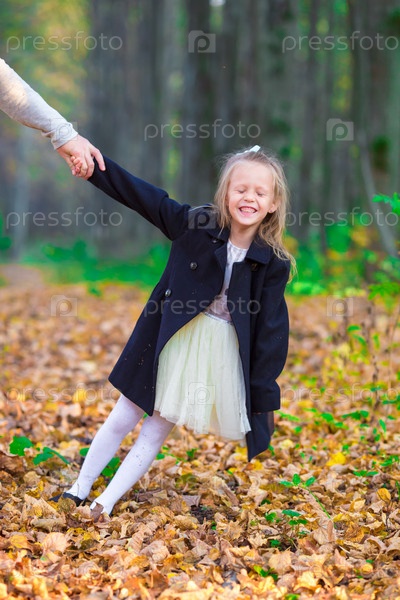 Очаровательны маленькая девочка на открытом воздухе в прекрасный осенний день