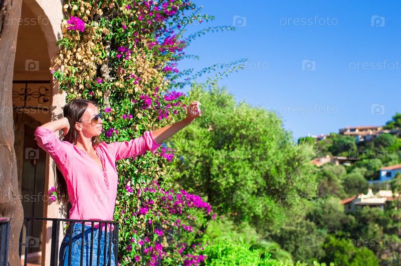 Молодая красивая женщина на балконе