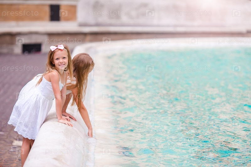 Очаровательные маленькие девочки возле фонтана Треви в Риме