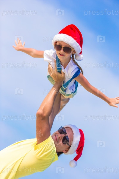 Маленькая девочка и счастливый папа во время пляжного отдыха