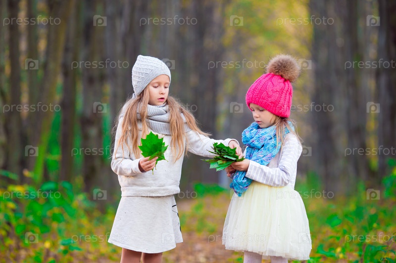 Маленькие очаровательные девушки в теплый солнечный осенний день