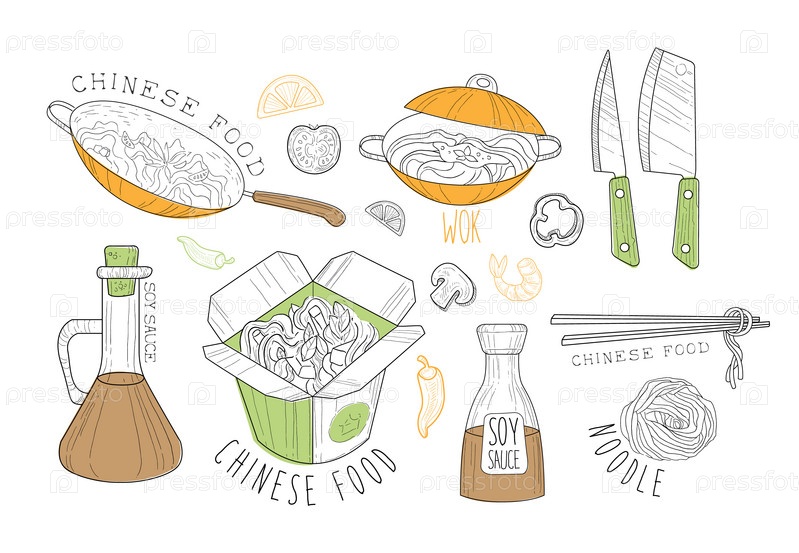 Китайская еда коллекция этикеток