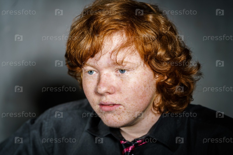 Эмоциональный портрет рыжеволосого веснушчатого мальчика