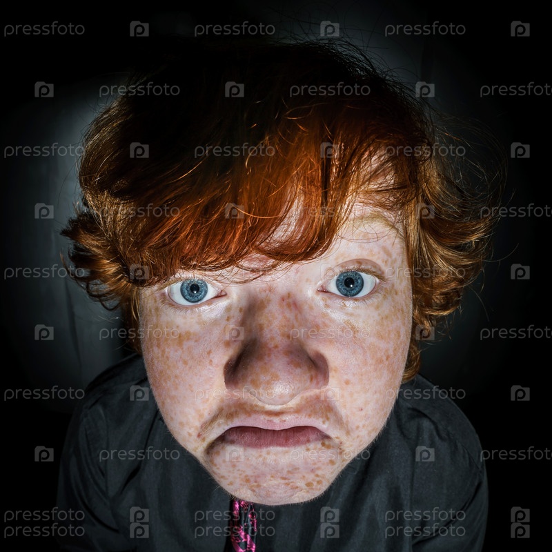 Эмоциональный портрет рыжеволосого веснушчатого мальчика