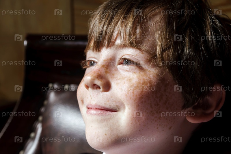 Эмоциональный портрет рыжеволосого веснушчатого мальчика