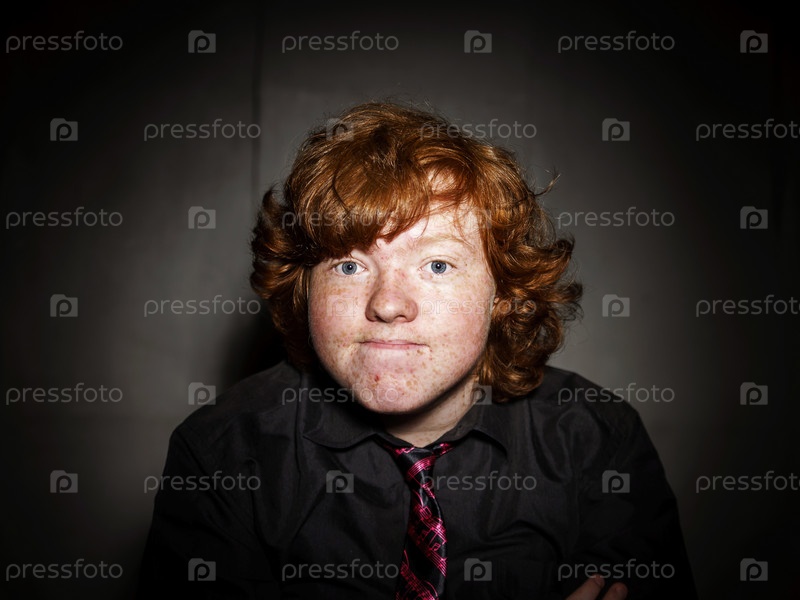 Эмоциональный портрет рыжеволосого веснушчатого мальчика