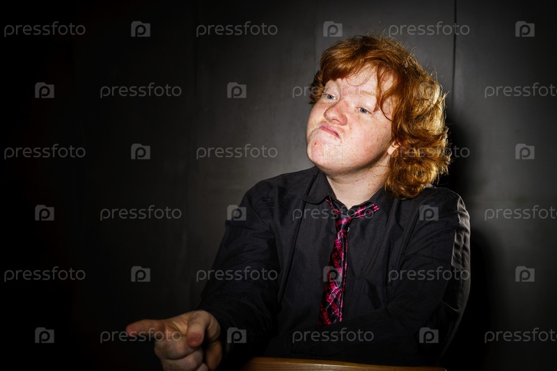 Эмоциональный портрет рыжеволосого веснушчатого мальчика