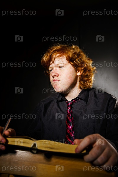 Веснушчатый рыжеволосой подросток