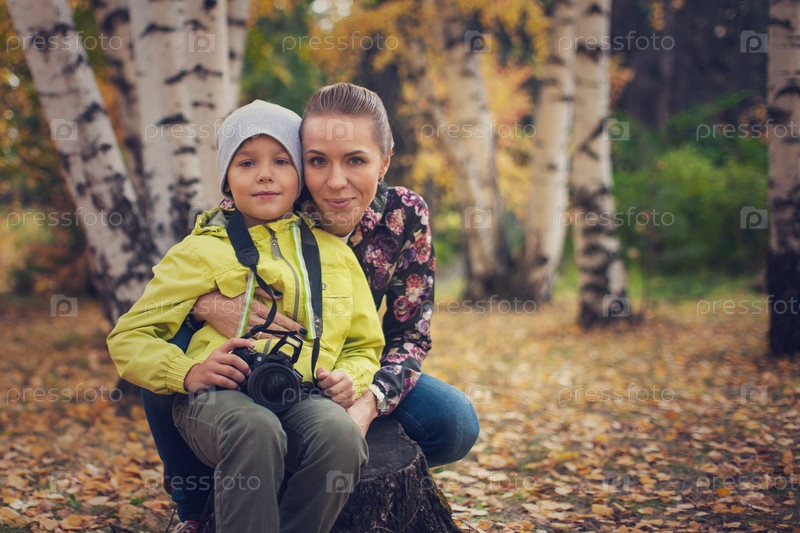 Мать и сын в осеннем парке
