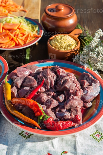 Русский стол с сырым мясом