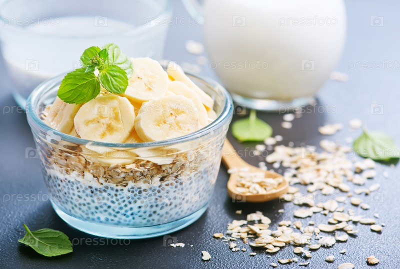Молоко с семенами чиа и бананом