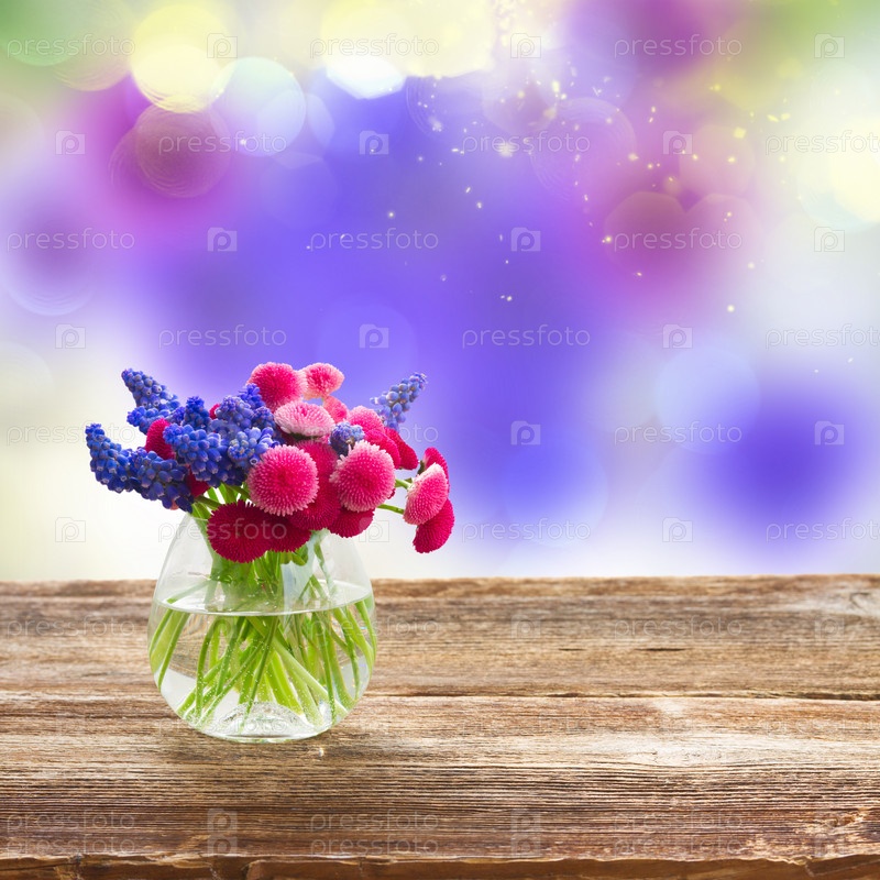 Мускари и цветы ромашки