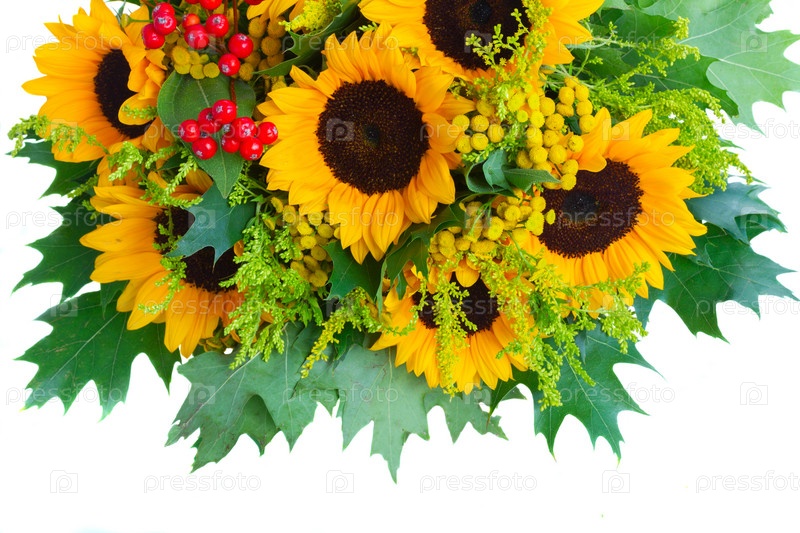 Подсолнухи с зелеными листьями