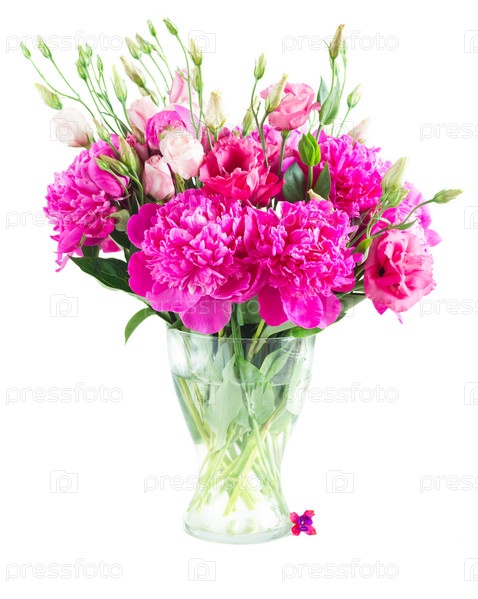 Ярко-розовые пионы и эустомы