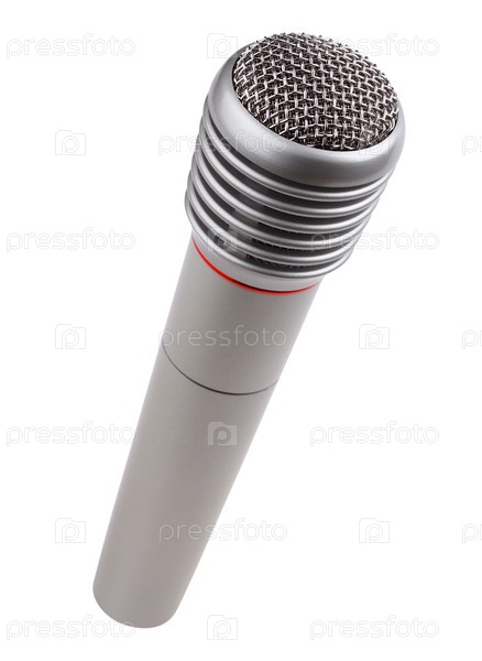 Металлический микрофон на белом фоне