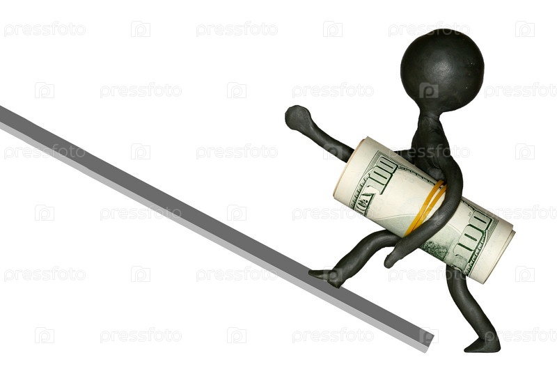 Человечек взбирается с долларами в руке