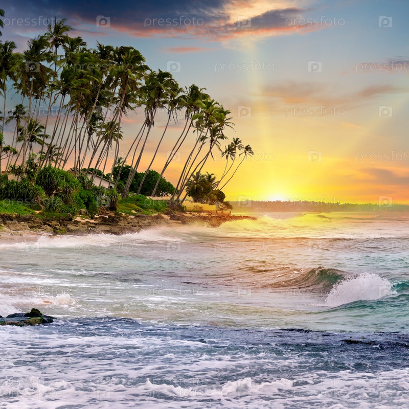 Фантастический восход солнца на берегу океана