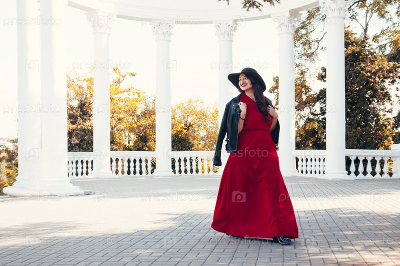 Красивая женщина в красном платье