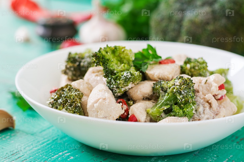 Нежное соте курицы с брокколи и перцем