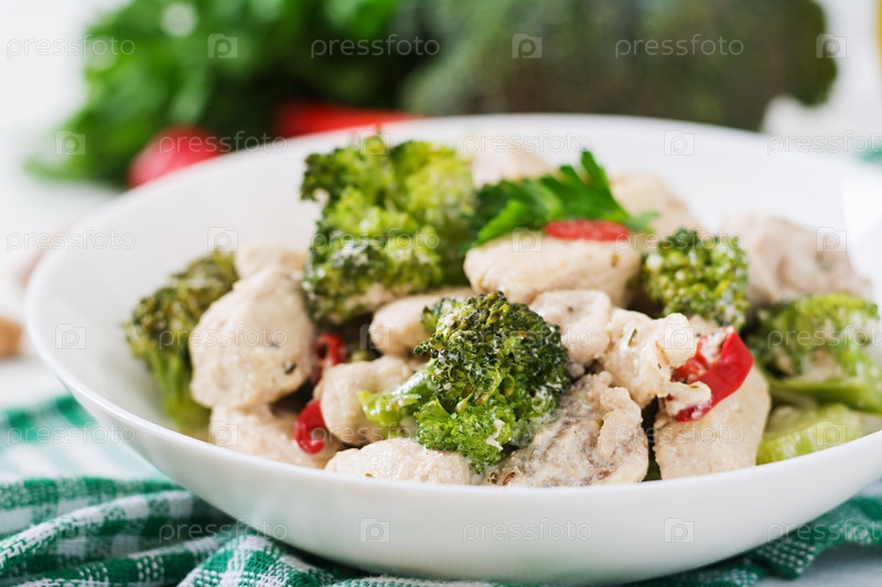 Нежное соте курицы с брокколи и перцем