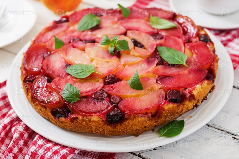 Нежный бисквитный торт с яблоками и вишней
