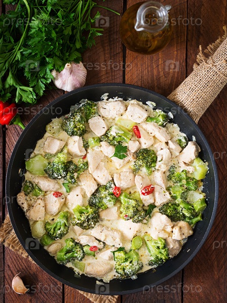 Нежное соте курицы с брокколи и перцем