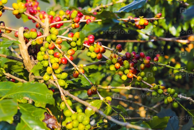 Кофе в зернах на ветках