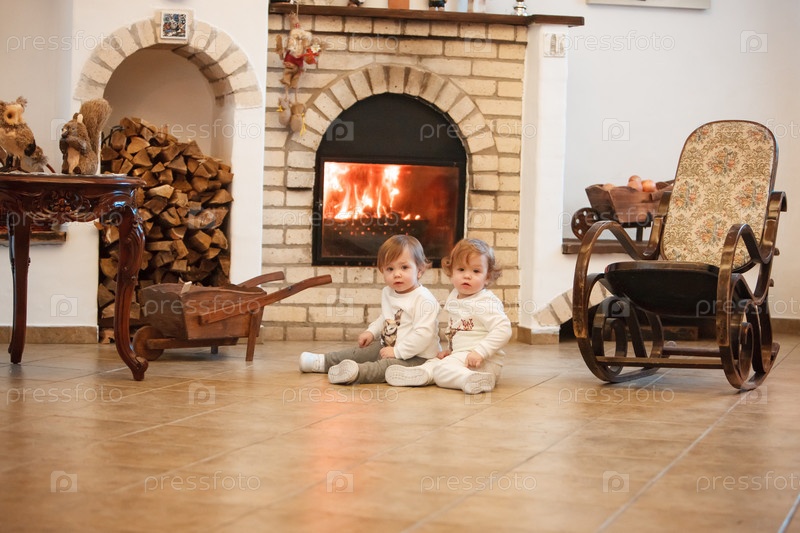 Две маленькие девочки у камина