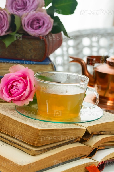 Чашка чая с книгами