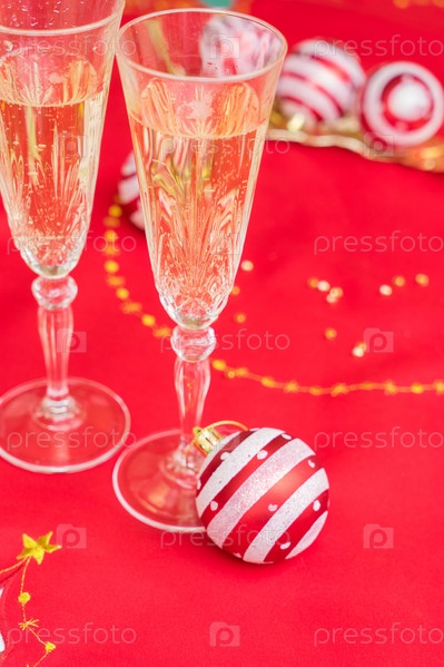 Рождественский стол с шампанским