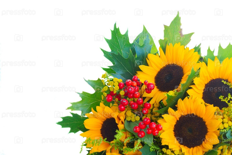 Подсолнухи с зелеными листьями