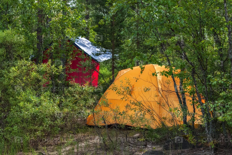 Желтая палатка в лесу