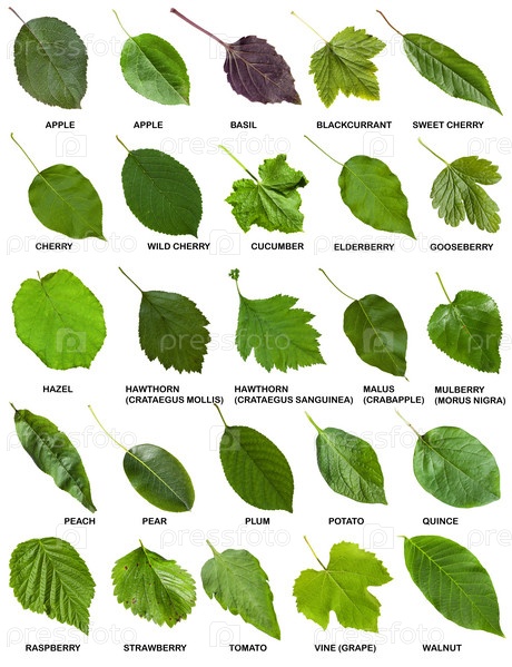 Зеленые листья деревьев и кустарников с названиями