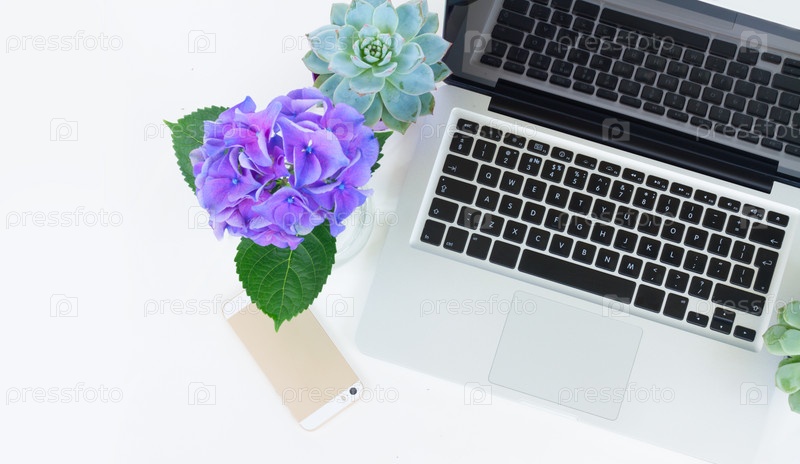 Ноутбук и цветы
