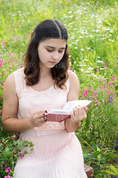 Красивая девочка с книжкой в поле